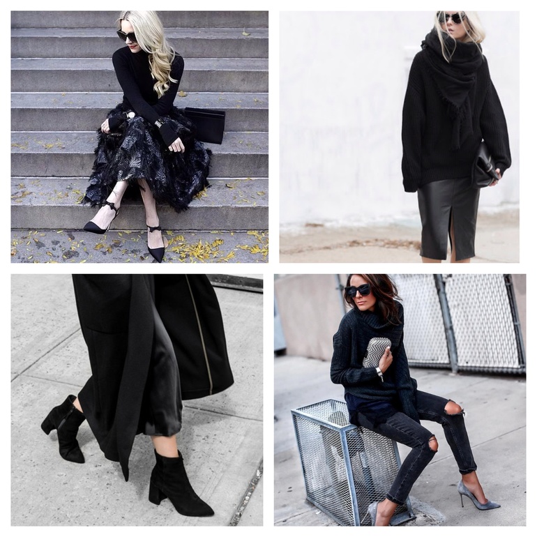 ☝️ Для total black образов особо актуальна многофактурность: шерсть, атлас, замша