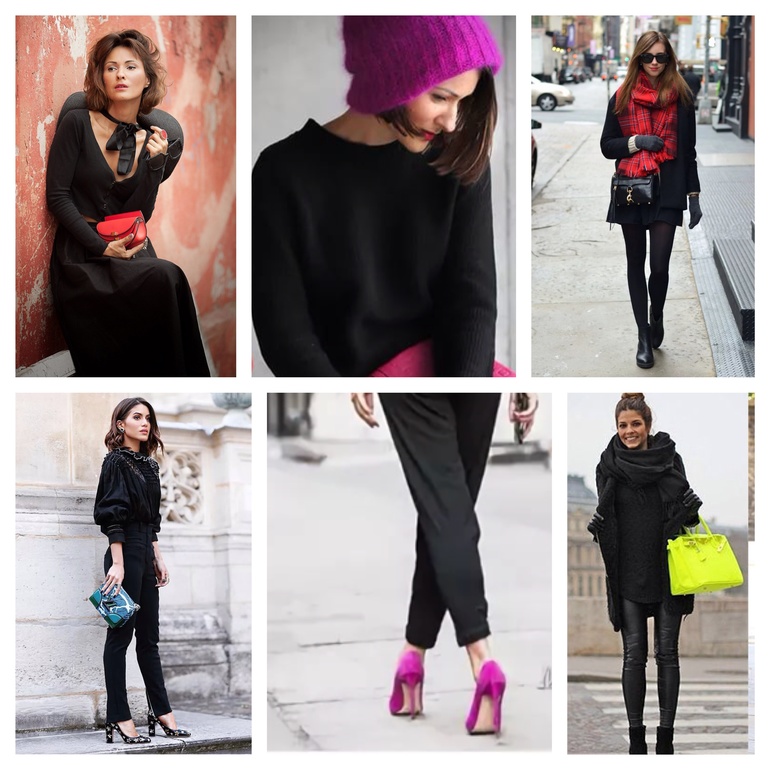 - Черный универсален с точки зрения комбинаторики. Единственный цвет, с которым черный смотрится негармонично - это коричневый. Ну еще не стоит сочетать черный с пастельными цветами.