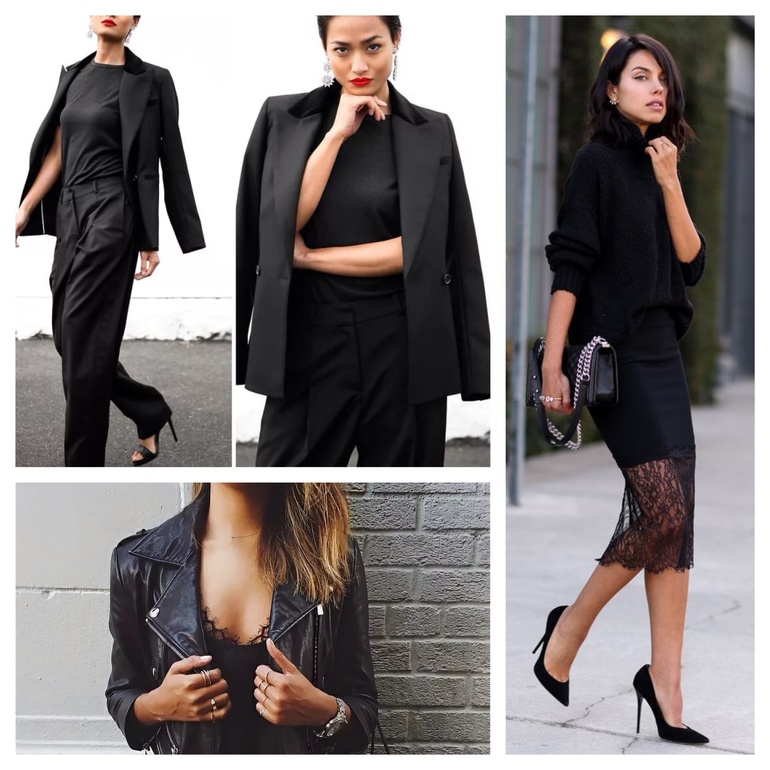 ✍️Немаленький список преимуществ, вполне мотивирующий закрыть глаза на недостатки черного цвета. И если ты любительница total black или в твоем гардеробе просто очень много черных вещей, то давай отметим ряд нюансов черных монохромов.