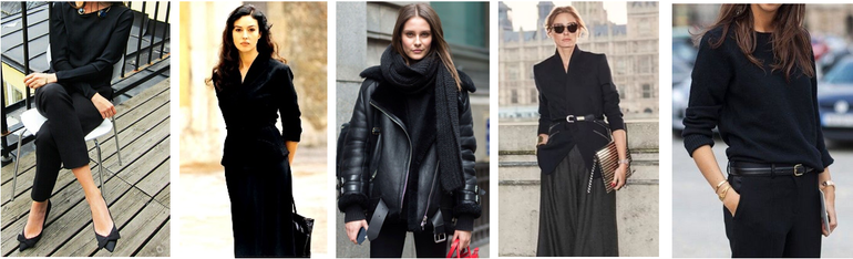 ☝️ Старайся выбирать черные вещи из качественных материалов, отлично сидящие по фигуре. Как ни странно на черных вещах очень заметны все изъяны. Обязательно своевременно избавляйся от "выстиранных" черных вещей, которые уже потеряли свой цвет. Следи за обязательным отсутствием катышков и всякого мусора на черной одежде. Черные ткани - самых лучший пылесборник. Избегай тонкого черного трикотажа.