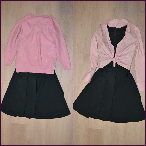 Голову чуть не сломала пока искала что с чем .... вещей у меня мало. Здесь одно платье (темно зеленое - бутылочный цвет), и 2 единственные вещи розового цвета.