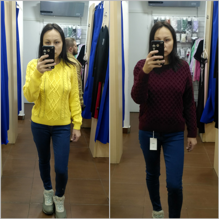 Вчера купила второй вариант, в жёлтом просто для контраста сфоткалась, слишком ярко. Вторая кофта получается оверсайз? Она большая и свободная))