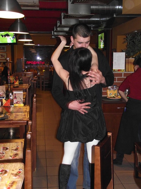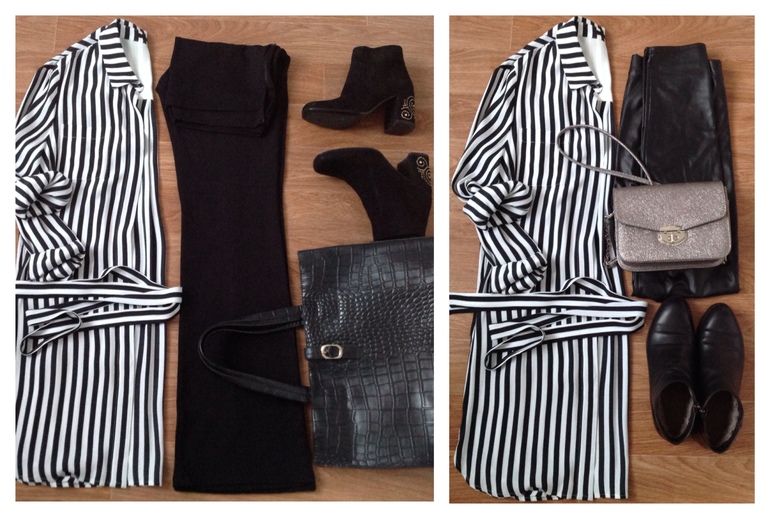 А это все зимнее, полосатая блуза и либо клеши, либо кожаные штаны