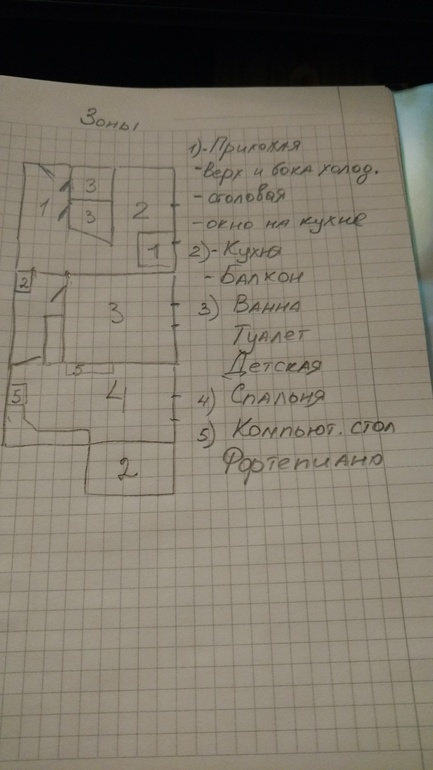 Очень рада, что ты вернулась к нам)) не совсем поняла твое зонирование. Гостиная не относится к первой зоне - это пятая. балкон тоже не пятая зона - вторая. Ты не писала, у вас детки есть?