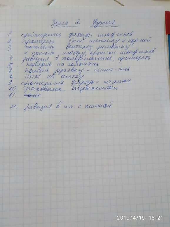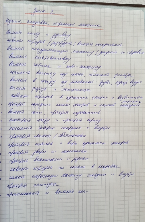 Объемный такой списочек - я, когда увидела его впервые - подумала, что вот на этом то моя система флай и закончится))) НО нашла в себе желание продолжать дальше - и не пожалела!! Поэтому девочки как и в предыдущий день, берем свой КЖ и обходим свои владения, отнесенные ко второй зоне. И пишем, пишем пишем)))