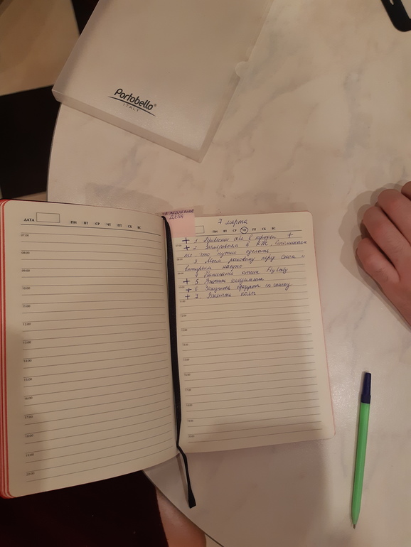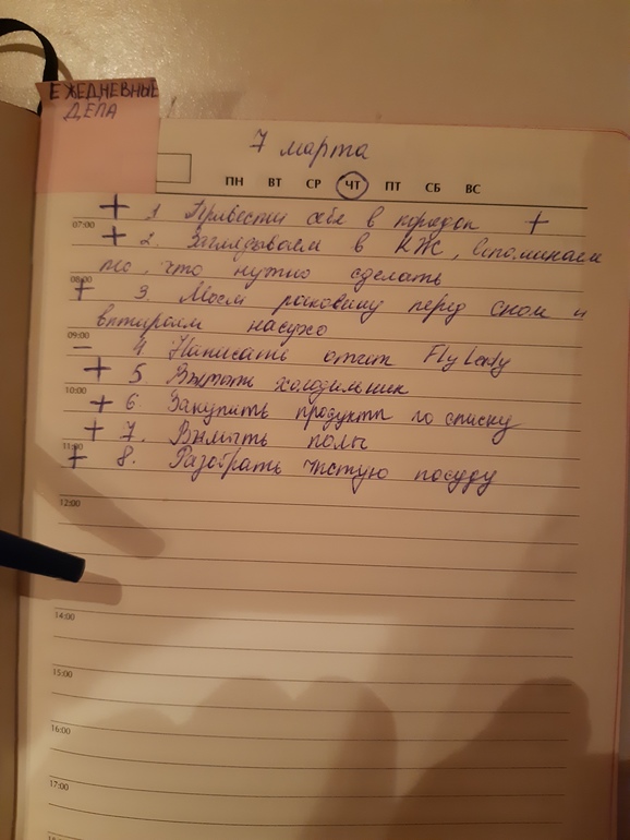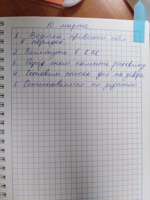 - Записываем список дел на завтра, отмечаем "галочкой" то, что сделано сегодня