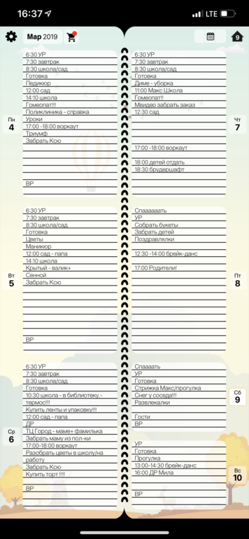 Долго думала, где делать напоминалки. Бумажный КЖ больше подходит для систематизации всего, а ежедневные штуки удобнее в телефоне. Осваиваю Todoist.
