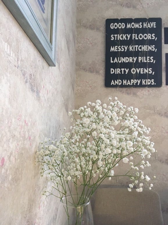 Вот мои цветочки и на заднем плане картина, которая каждый день мне напоминает, о том чтобы не зацикливаться на перфекционизме!