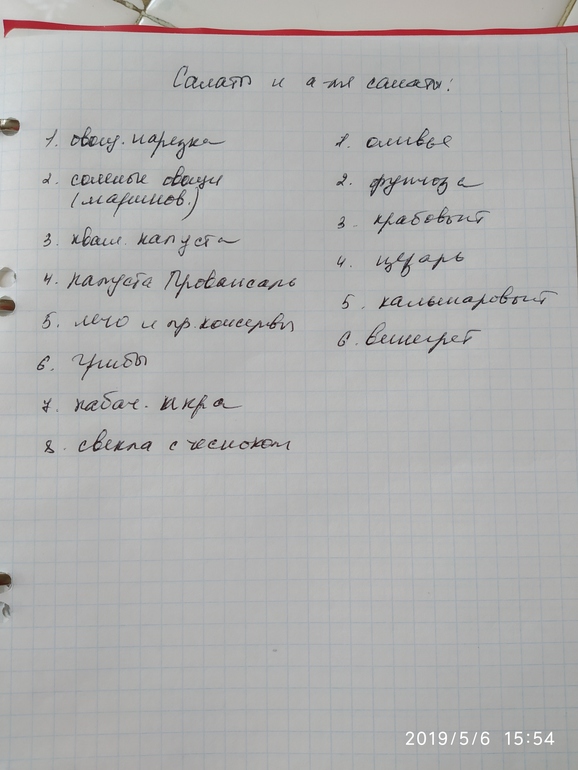 И вот ещё набросала список салатов ( их конечно больше, это то, что чаще готовилось и елось до этого), тоже ещё доработаю в процессе.