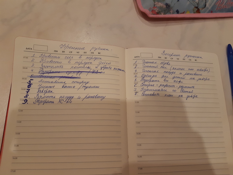 Оль, даже не знаю, что сказать. Я бы назвала всё же списком дел. ЗК вообще не сюда, как и уроки. В этом взлёте я делаю упор на уборку к Пасхе, хочу навести порядок. Но ты же уже летала. Должна знать, что Рутина у Марлы имеет несколько другое значение. Почитай описание, что я писала в прошлом взлёте https://www.babyblog.ru/community/post/FlyLady/1801711 Я ещё разберу рутину ближе к концу. Пускай у тебя будет 3-4 пункта, а остальное списком дел
