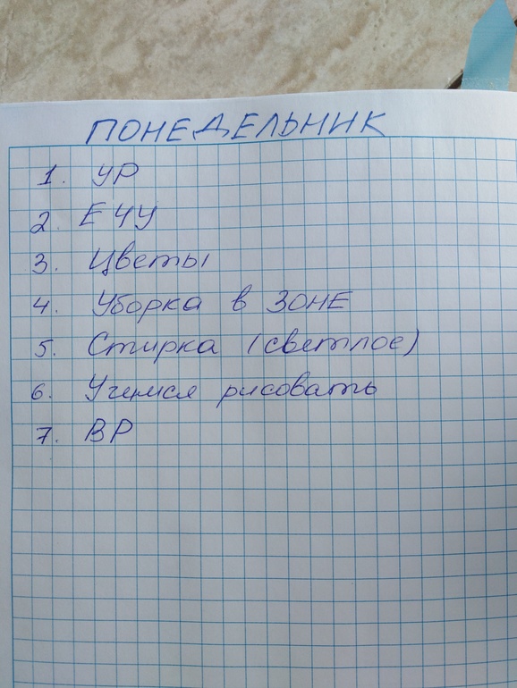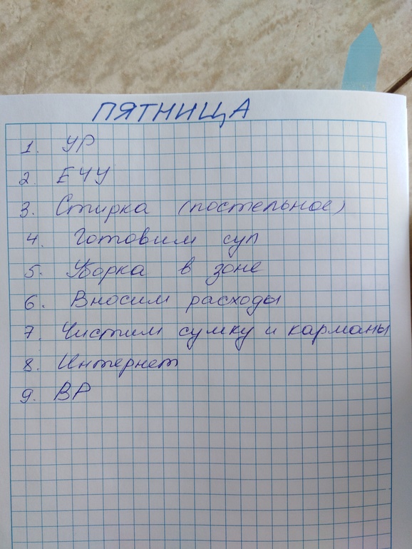 Мой БНП. Всё думала, как его сделать, потом поняла, что мне нужно 2 плана, 1 если дочка в саду, другой, если она дома. Если дома, то ЕЧУ каждый день по чуть-чуть из списка, глажка переносится на выходные, планирование на следующую неделю урывками до пятницы.