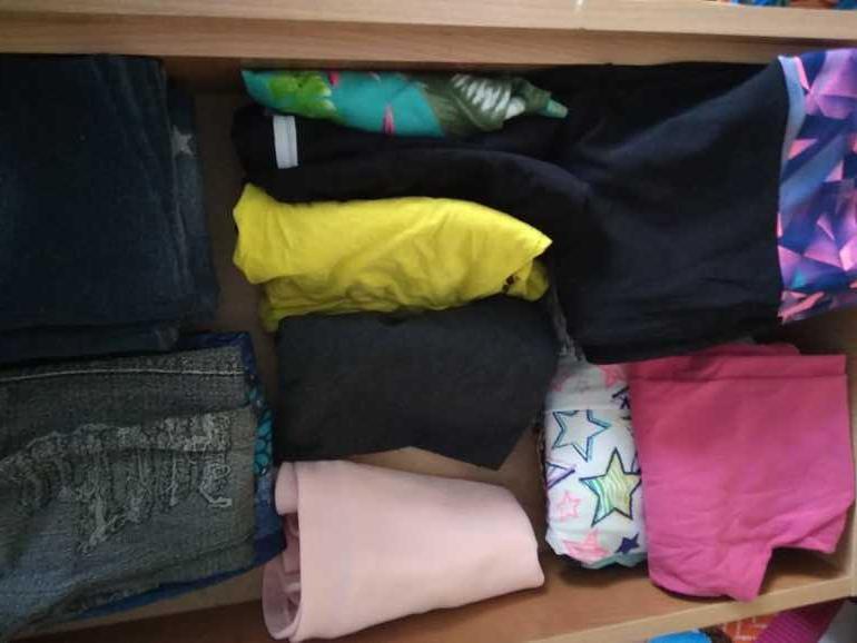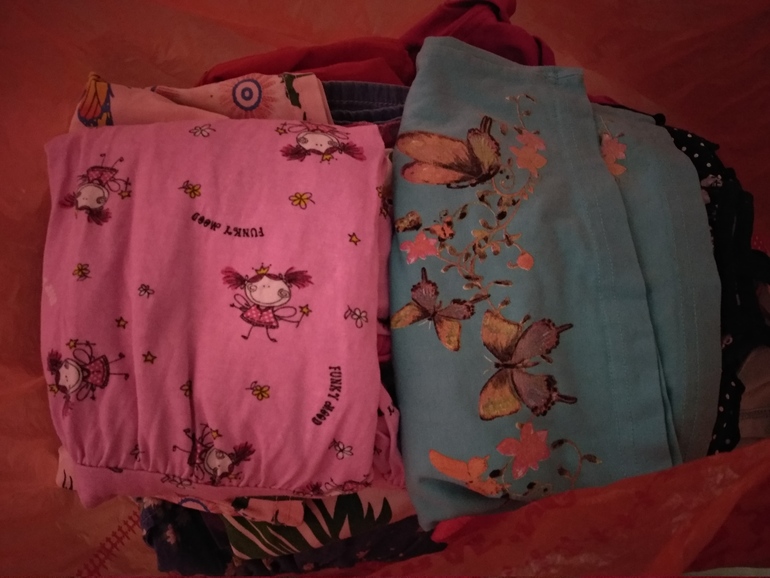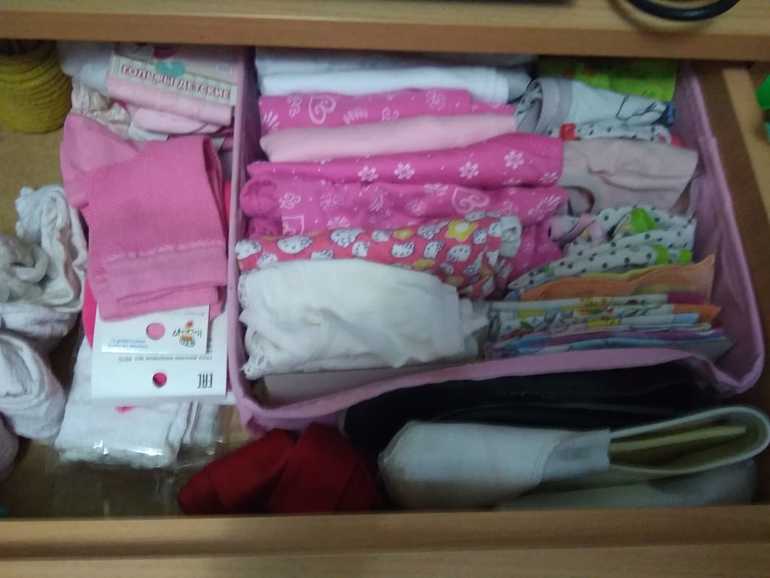 Плохих вещей там нет, их вообще сразу выкидываю. А эти отдам. Еще сумка под кроватью нашей лежит с вещами от 0 до 2 лет. Но там все сложнее: надо щит поднимать, а он тяжеленный. Муж со следующей недели в отпуск пойдет, тогда и попрошу его. Посмотрю, что там с ними за 3 года произошло, и хорошие тоже отдам. Остальные выкину.