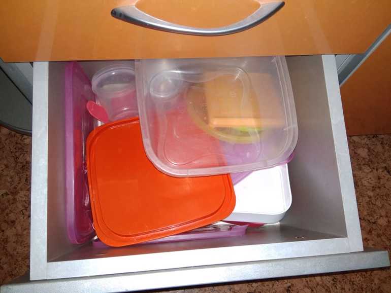 1. Пересматриваем всю кухонную утварь, посуду, столовые приборы, контейнеры для хранения.