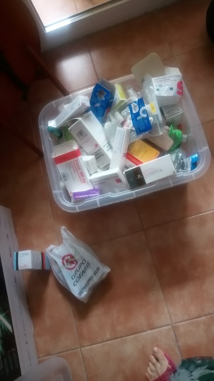 У меня сегодня были лекарства, они в шкафу в пластиковой коробке с крышкой.