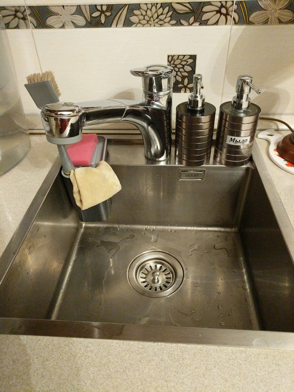 Еще немного про раковину: если вы в декрете, работаете дома, домохозяйка, пожалуйста, не надо драить с утра до вечера раковину и держать ее в боевой готовности, чтобы в любой момент соседка могла прийти с фотоаппаратом и запостить ее в инстаграм. Мы не ставим задачу превратить свой дом в музей или выставку. Главное, чтобы утром вас встречала чистая свежая раковина (пусть даже с оставленной мужем чашкой), а не гора посуды с присохшим жиром. В течение дня раковина имеет полное право выглядеть на твердую троечку, особенно если вы много готовите. Я после готовки (готовлю преимущественно на выходных и раз в будни) обычно просто споласкиваю раковину водой, а если чистила овощи, мясо - протираю ее губкой с фейри или мылом (на это уходит 1 минута).