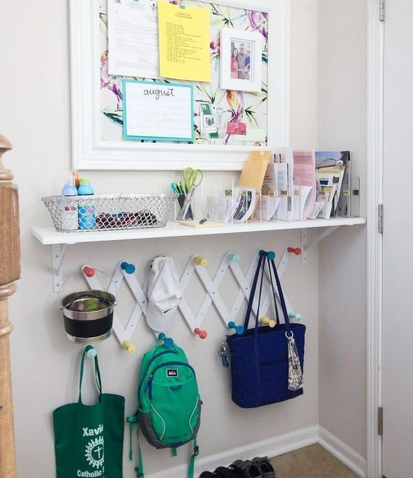 В прихожей также необходимо выделить крючки для верхней одежды на уровне роста ребенка. В подставке для зонтов аналогично должно найтись место зонтику малыша. Обувь совсем маленьких можно хранить в общем ящике-шкафчике, но отдельной коробке.