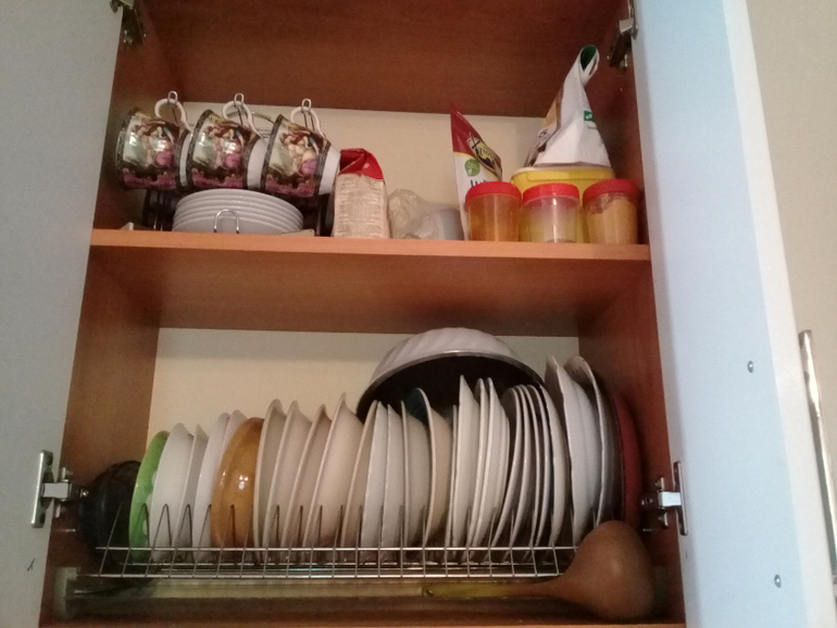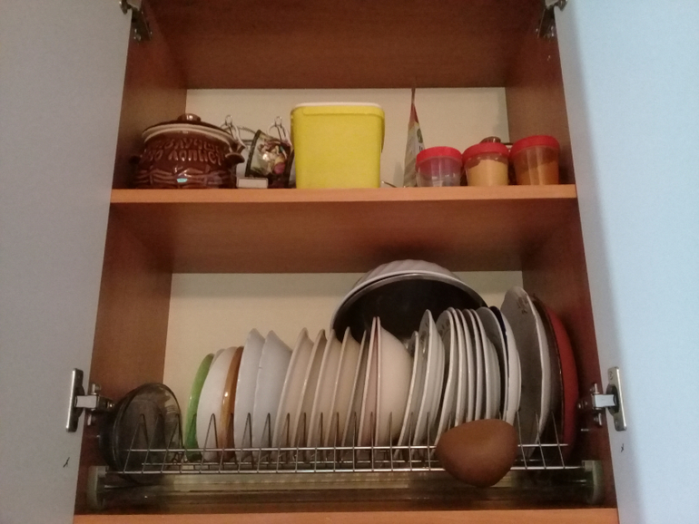 -разобрала шкаф с посудой, помыла поддон, полки, опять же лишнее выкинула