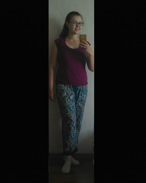 Одежду для дома пересматриваю регулярно, так что старья-рванья не осталось. Сплю в пижаме, в ней же хожу рано утром, если младшая дочка разбудит до времени подъёма. Потом переодеваюсь в штаны/велосипедки и футболку. Хорошего фартука нет, создала себе задачу по его покупке.