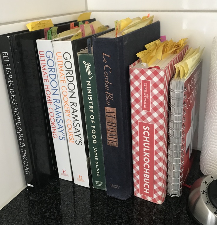 Когда у меня заводится новая книга, я ее внимательно изучаю и индексирую пост ит рецепты которые планирую приготовить. Напишите сверху на бумажке что это. Тогда нужный рецепт находится за секунды. Потом я рецепт тестирую и если нравится, пост ит оставляю, если нет - отдираю и забываю. На самом рецепте делаю пометку, что протестировано и не понравилось.