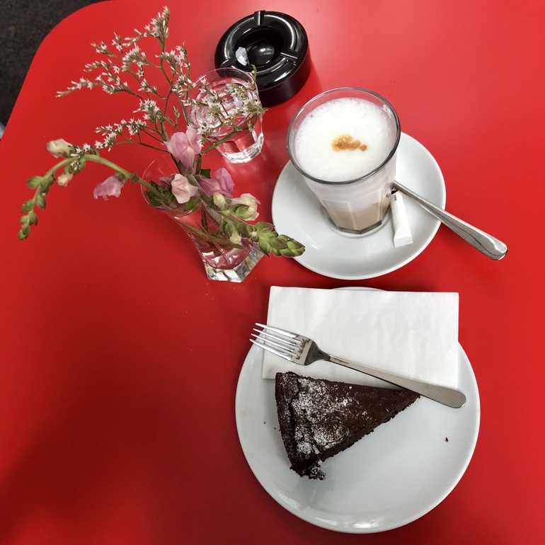 Потом мы замечательно посидели в кафешке с кофе и пирогом. Дела делами, а любить себя - по расписанию. Мне шоколадные пироги дома печь диетическая совесть не разрешает. Как только я собираю в одном месте нужные ингредиенты и смотрю на количество масла, шоколада, сахара и орехов, то сразу хочу сказать: «ой простите, бес попутал, сейчас салатик с куриной грудкой сделаем».
