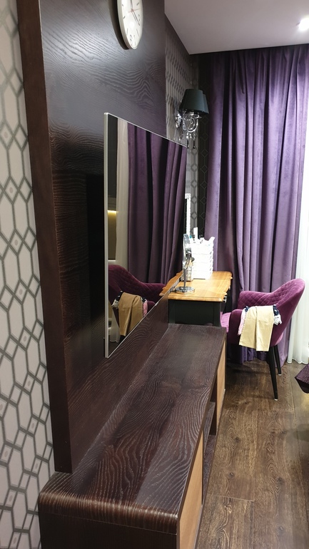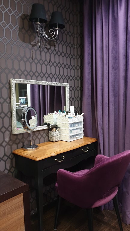 А вот видите эту длинную подвесную тумбу под телеком? Идеальное место для хот спота, правда?😄 но! Никогда им не бывает! Ну пульт там может лежать. Или игрушки неск минут)) ведь в спальне места игрушкам нет, это закон)) А вот мой фиолетовый стульчик часто бывает хотом.. когда одежда сразу не убирается в шкаф)) вот,кстати, и щас🤭 дочкины брючки и домашняя юбочка... не успела оглянуться,как уже их кто-то не донес до шкафа😁