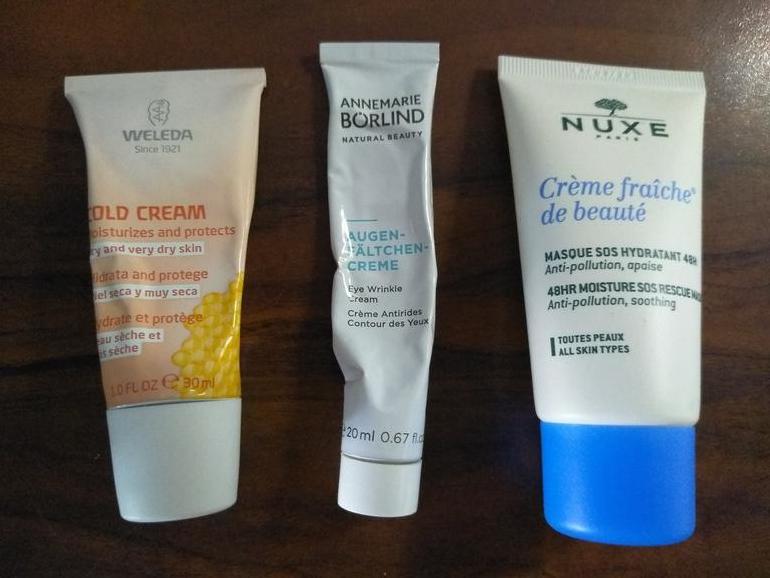 Тоже довольна: Веледа Колд крем (зимой в мороз на лицо себе и детям), АМBorlind крем для глаз, Nux увлажняющая маска (эту марку я люблю за запах, если честно, а не за эффективность😂):