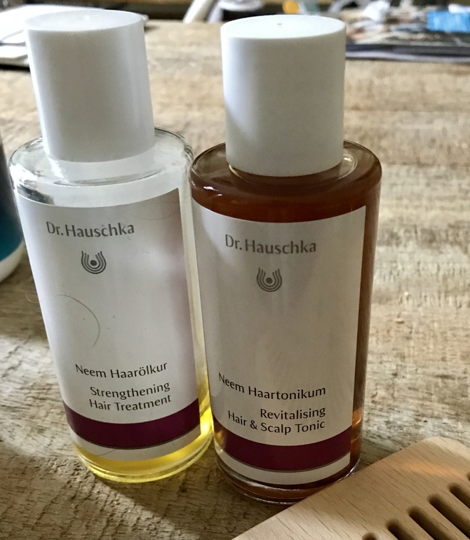 Кроме обычного шампуня с кондиционером я сначала намазываю волосы маской с маслом и после мытья ещё и тоником (Мега классная штука)