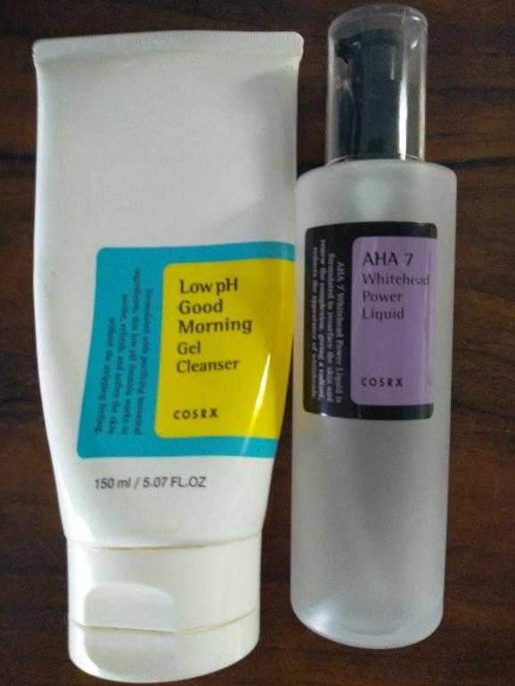 Умываю лицо Cosrx, очень нравится этот их кислотный тоник, смотрела обзоры состава, там очень хороший процент гликолевой кислоты:
