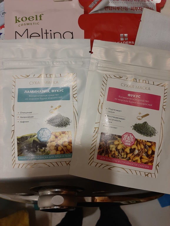 Ещё муж привёз из Архангельска водорослевые маски (у них там экспериментальный водорослевый завод), но их разводить нужно...пока руки не дошли до них)