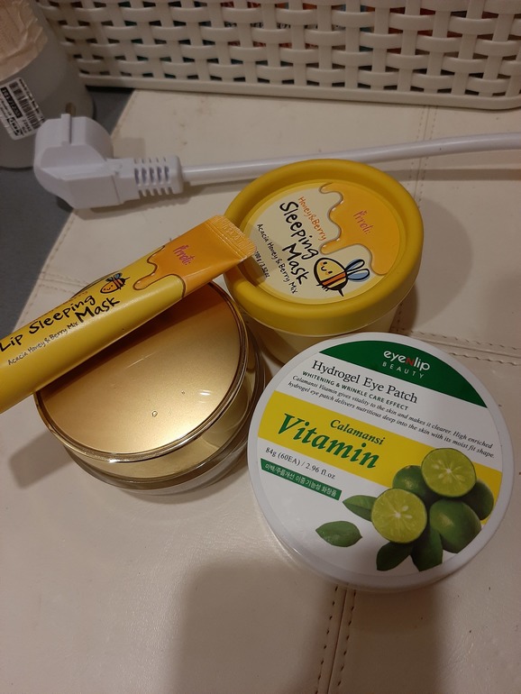 Медовая ночная маска для лица и губ хорошие,но нужно делать не перед самым сном, чтобы она успела подсохнуть на лице..липкая как мёд)