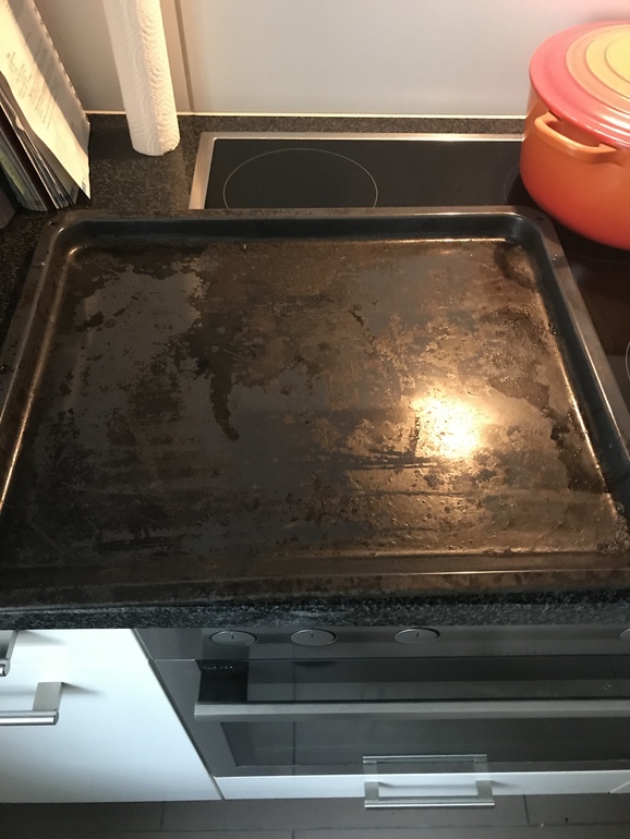 Потом меня заел приступ перфекционизма. Я заказала чистящее средство для духовки от электролюкс и поскольку духовку я уже вымыла, для тестирования у меня имеется вот этот ужас:
