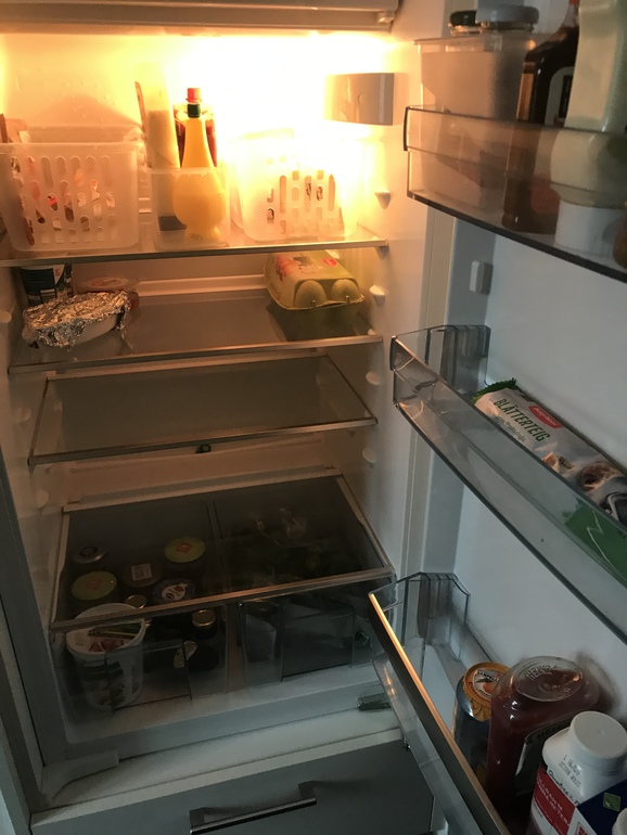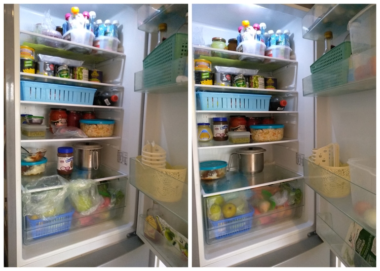 Тем не менее, у нас большая радость и нам наконец то привезли полки в холодильник, поэтому за 15 минут я его одной рукой отмыла и теперь у нас холодильник Белого человека, за продуктами правда надо 🤣🤣