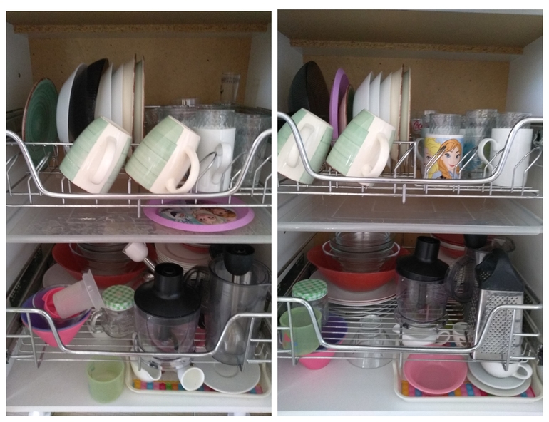 15мин на кухне, отмыла шкаф с посудой и оставшийся выдвижной ящик: