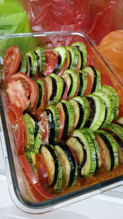 Рататуй даже не знаю , пыталась по рецепту, а все равно все как то по своему получается. Главное спелые овощи. Сначало надо сделать заливку или соус не знаю как правильно. Пожарить овощи лук(очень много лука, как любите), морковь, баклажан, перец, я жарю каждый овощ отдельно , он тогда точно обжаривается хорошо и сок свой пускает и не каша. Хотя делаем по сути кашу:) но это мои заморочки.