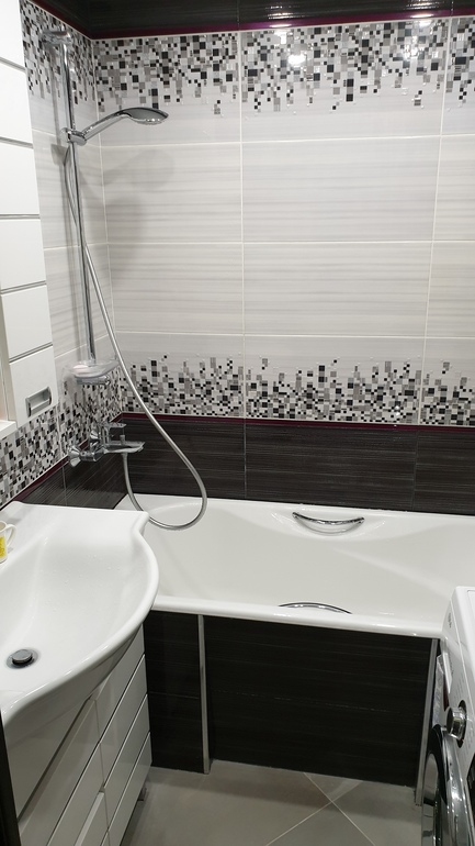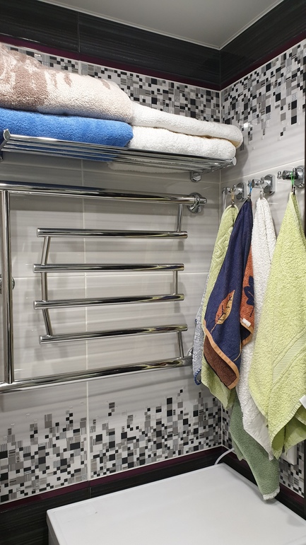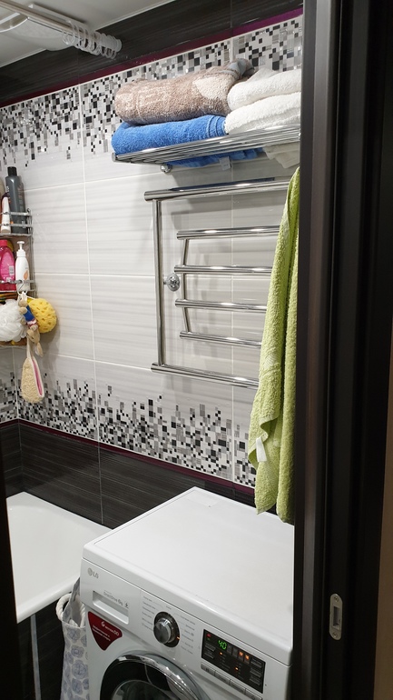 На фото не хватает коврика и занавески, они как раз стирались в момент фото)))