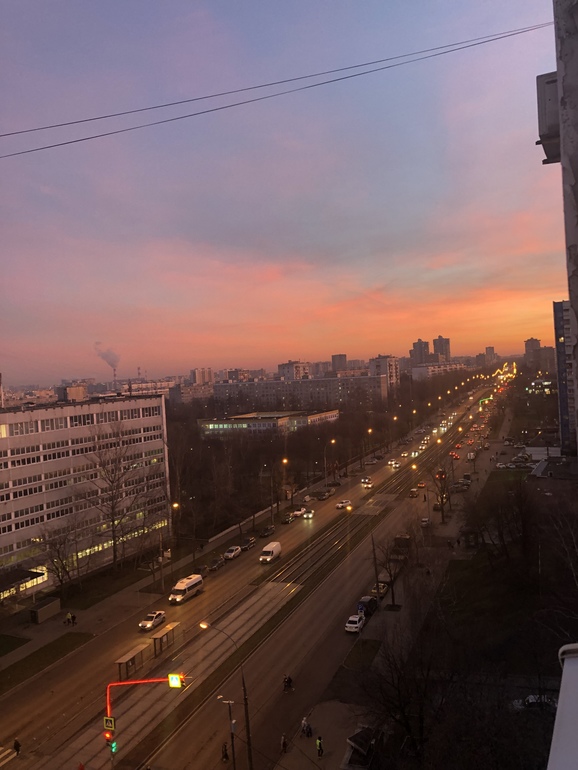И ещё был первый солнечный день в мск недели за 2, и очень красивый закат: