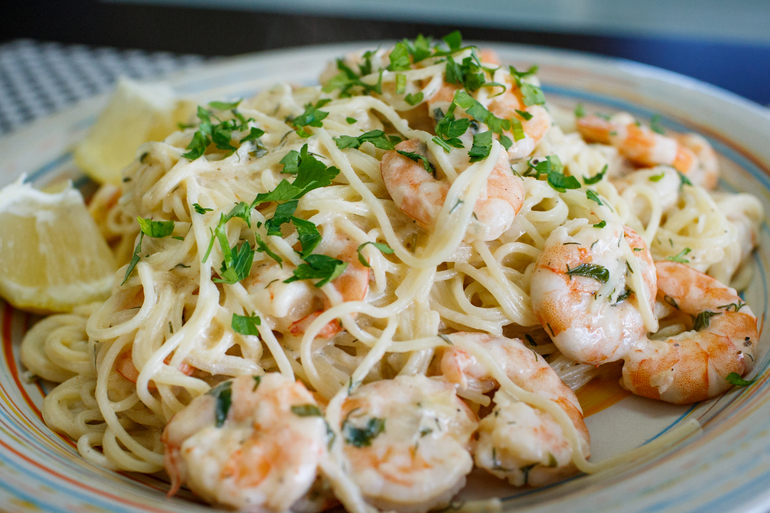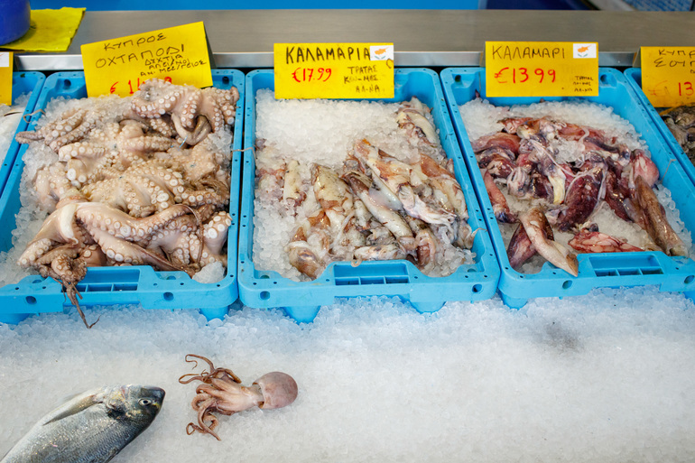 Мы редко покупаем рыбу и морепродукты, т.к. дорого :) Покупаем осьминога, я научилась вкусно делать на сковородке-гриль, получается как в тавернах. Или тушу его в вине с корицей, но это редко, т.к. кроме меня это никто дома не ест. Креветки покупаем - варим их к пиву или я делаю пасту с креветками в сливочном соусе, очень вкусно.