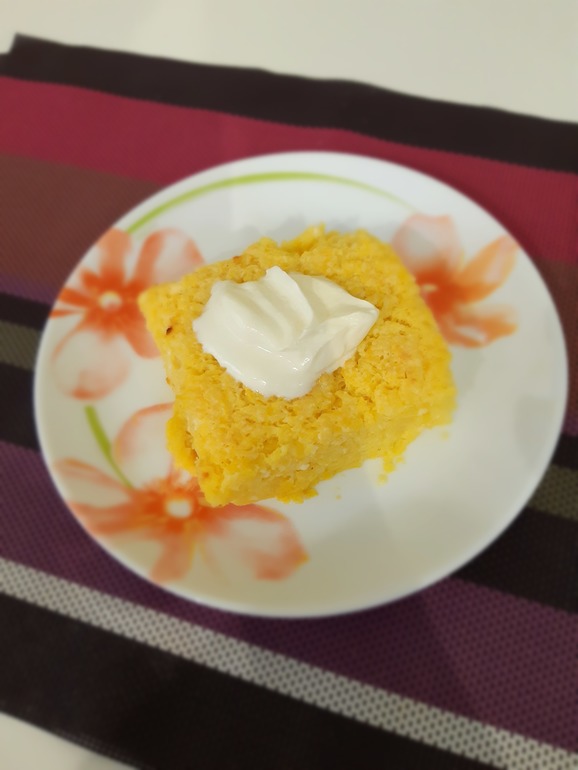 У нас была очередная запеканка - на этот раз кабачковая. Самая простая - кабачок (так же через мясорубку, творог, манка, яйца, соль) - и со сметанкой - практически кабачковые олашки, но с поправкой на то, что еще и детям есть можно)
