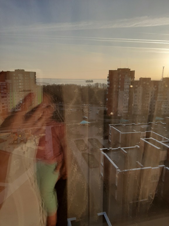 Вот на фото немного закат виден, но его дом закрывает. А так у нас закаты красиво смотреть из другой половины квартиры. Особенно летом) Жаль балкона с этой стороны нет ( у соседей есть, но они ним не пользуются..глупые)