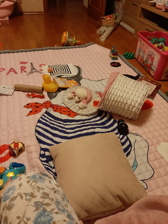 Ох, да, иногда вернёшься в выходной домой вечером, когда муж весь день с ребёнком 🙈🤪😂 А по будням это моя расплата за ее самостоятельность🙈 У вас потом ещё в Лего начнёт играть, и тогда точно будет как у нас))) Покажи вашего француза?) это плед или детский коврик?