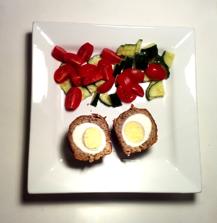 В Англии это продаётся под названием Scotch egg, очень популярно и естся холодным в качестве закуски. Мне не нравится в холодном виде, поэтому я приготовила свои горячие. Обалденно! Дочь смела. У меня сильные ограничения в меню из-за дочери (80% общепринятой еды она есть не будет), но я продолжаю экспериментировать, в данном случае очень удачно!