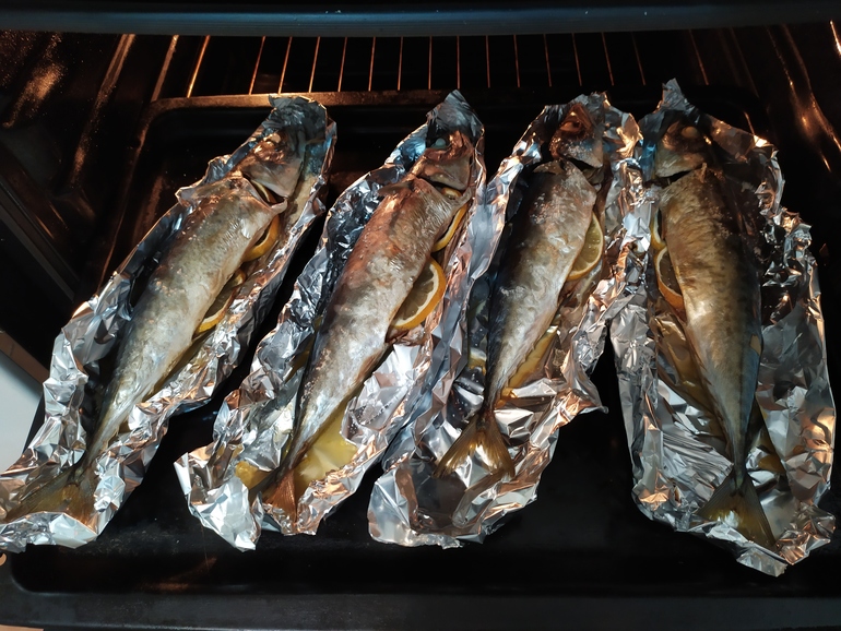 Запекала в духовке рыбу в фольге и с лимоном. Называется кабайя, похожа на нашу скумбрию.