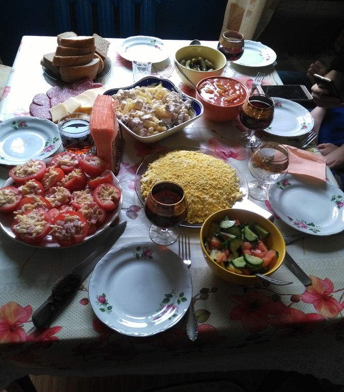 Для нас с мужем почти не готовила. У нас заговенье на пост, муж попросил сделать ему еще сосисок в тесте, чтобы перед постом успеть налопаться. Еще хотела сварить язык, но не нашла - у нас язык днем с огнем не сыщешь :( Обещали сегодня привезти в магазин и не привезли. И вечером шарлотку испеку, наверно.
