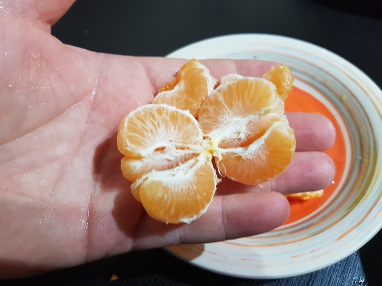 И еще мы сняли первые мандаринчики с нашего балконного дерева :))) Думали, на новый год символично сорвем, но они до нового года не дотянули, поспели раньше :)))) Без косточек!