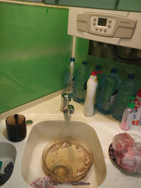 Это то,что я не успела убрать после завтрака. Раковину после прикреплю чуть позже,у нее спа с термоядерной химозой).