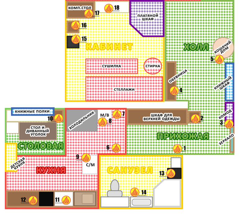 №1 у стены сбоку от входной двери получилось победить. Любимый складировал там коробки с молоком, кошачий наполнитель и пакеты с авоськами для магазина. В общем что не нужно убрать в холодильник, оседало сразу у входа.