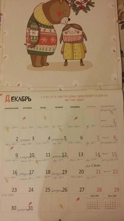 Отчитываемся по заданиямВчера дежурила. Рутинки утренние выполнила. Семейный календарь прижился с первого взлета. Отмечаю занятия сына, свои дежурства, ДР, праздники, важные встречи, походы к врачам, в парикмахерскую, в театры, кино и т.д. Муж типа не смотрит, считает, что все помнит, но...зато постоянно меня спрашивает. Бесит🙈🙈🙈 (терплю).