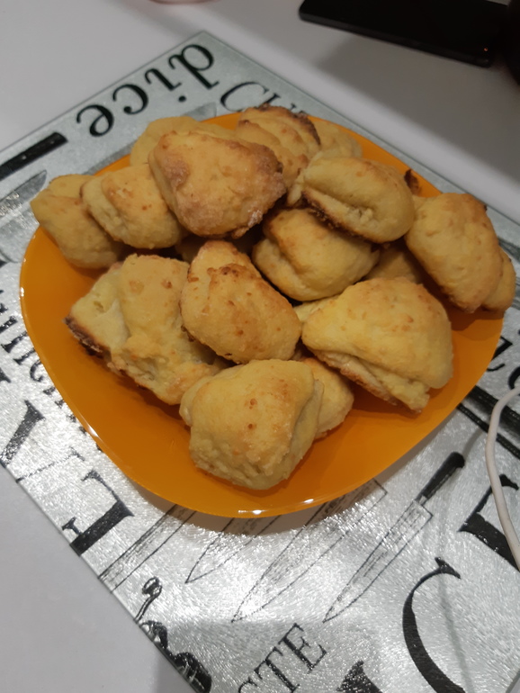 По рецепту Оли наделала Ушек. Но без пергаментной бумаги они не то чтоб подгорели, а сахар запекся до почти чёрного цвета на некоторых печенюхах. Муж сказал внутри сыровато, а по мне самое то. А как должно быть? Я и дети смолотили почти за раз.