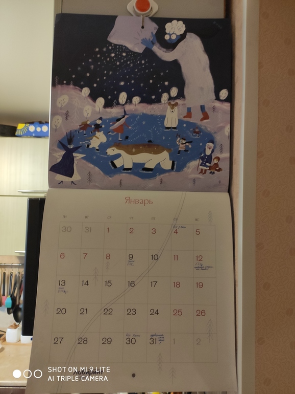Зато недавно мне достался красивый календарь с большимм ячейками и я сразу же взяла его "в работу"