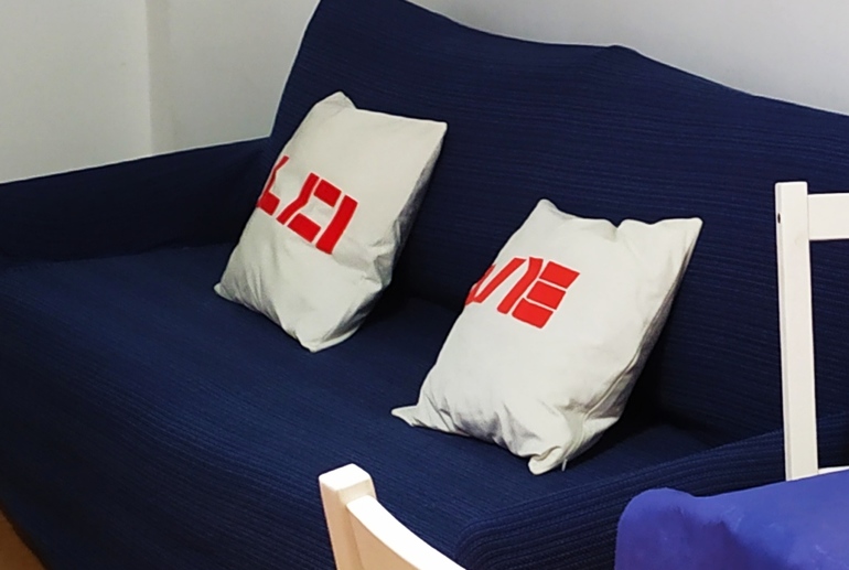 Задекорировала подушки словом love: